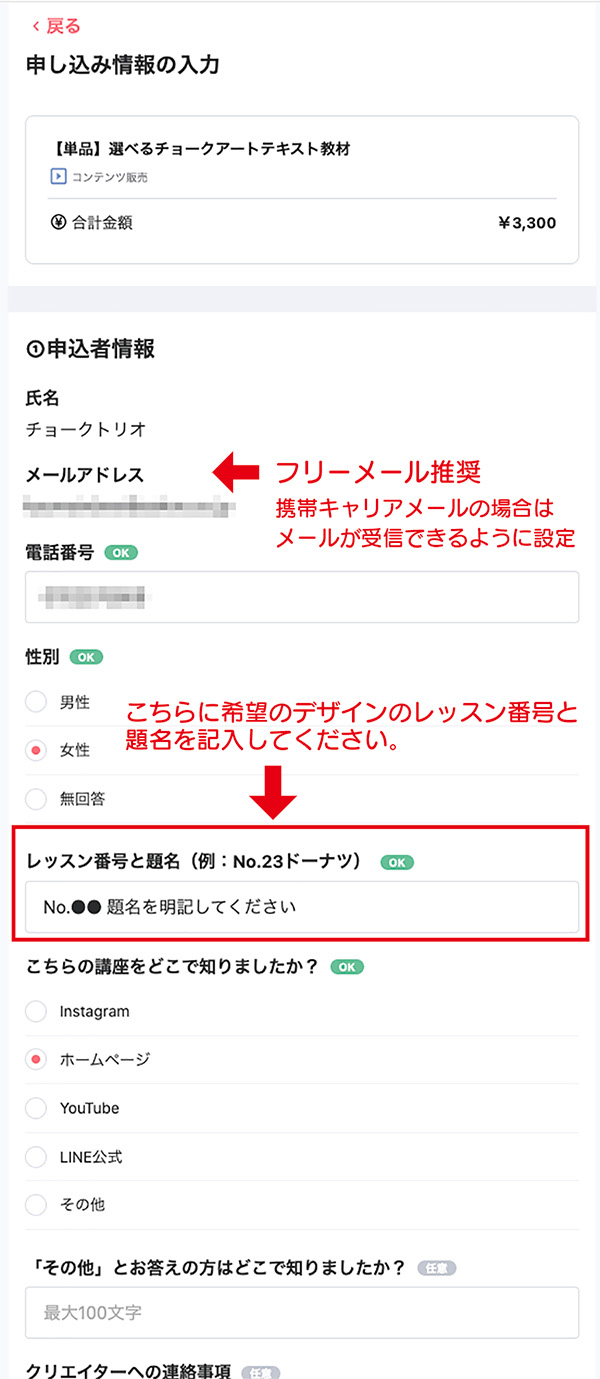 申し込み時の注意点