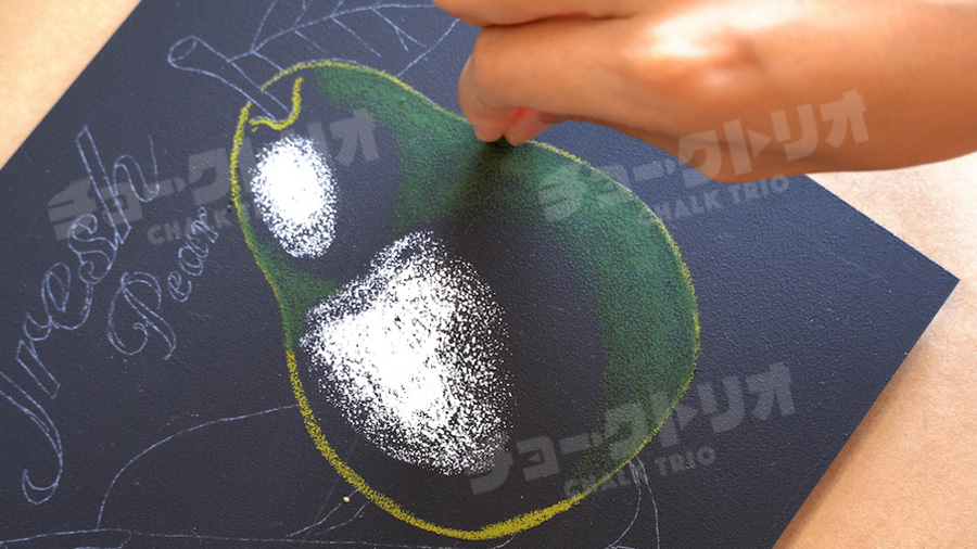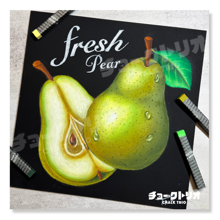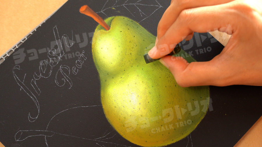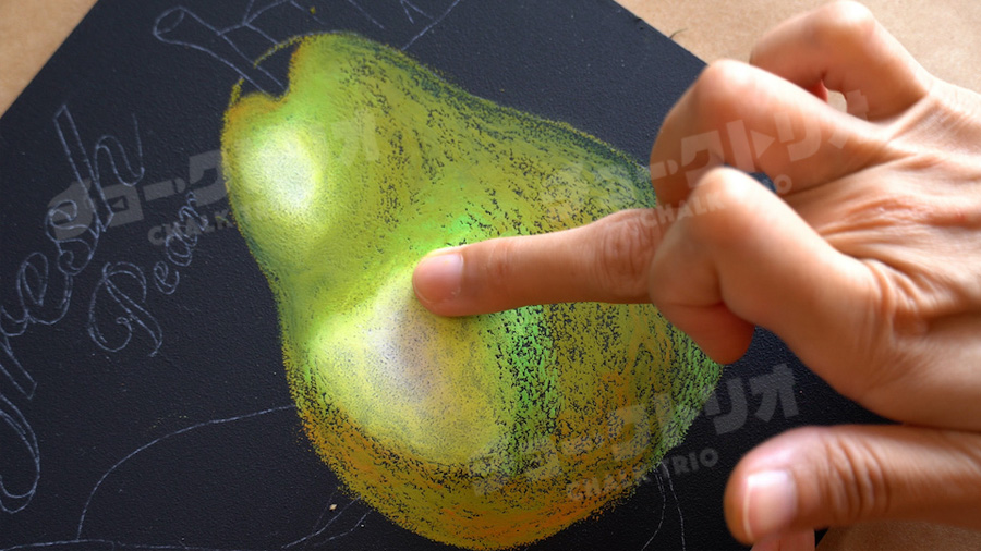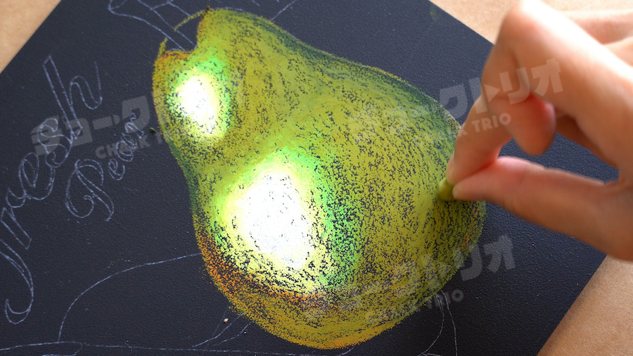 今回はグリーンと黄色が美しい『洋梨』をチョークアートで描いてみます!