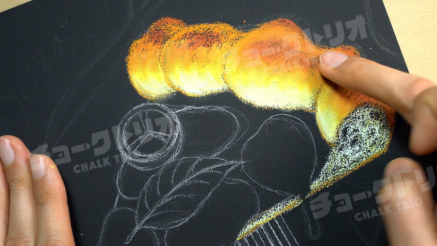 ※描き方はチョークトリオ流なので、基本のチョークアートの塗り方とは異なるところがあります。ご了承ください。