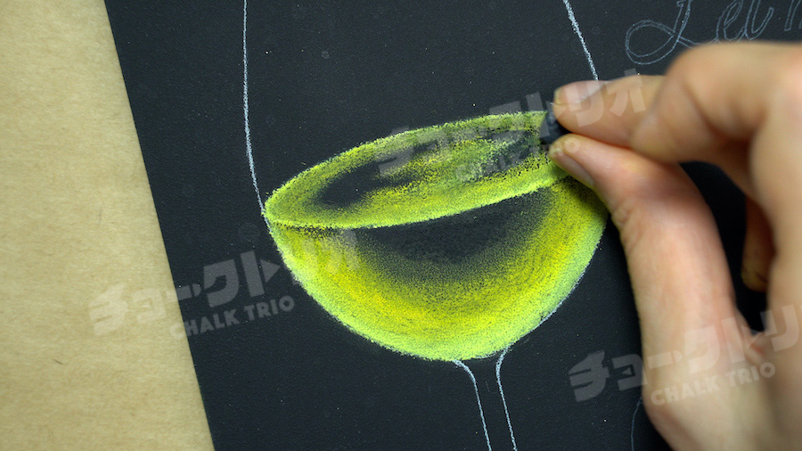 透明のグラスはチョークアートでは少し難易度が高いモチーフです。
