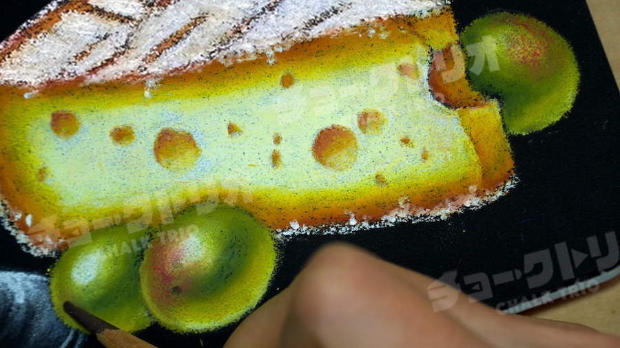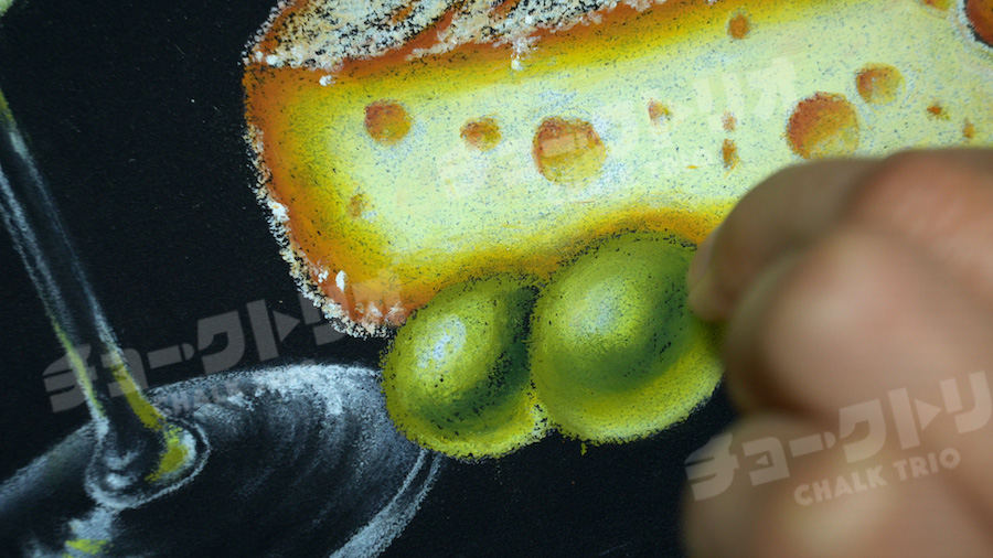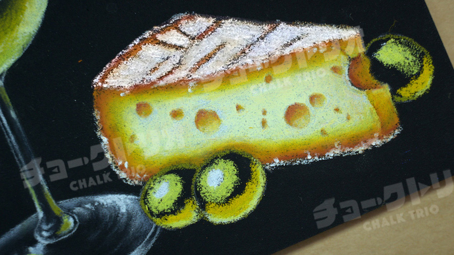 今回は白ワインとチーズのチョークアートを描いてみました。